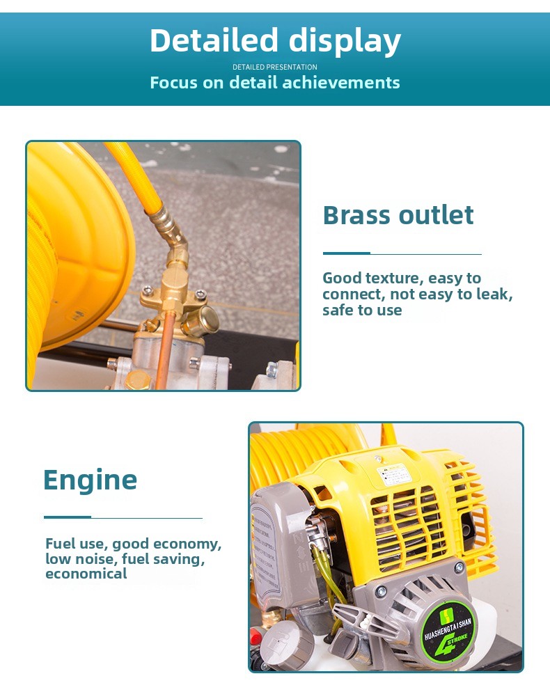 Gasoline engine sprayer: Four-stroke TU-26 gasoline engine high-pressure power, strong power, stable output.