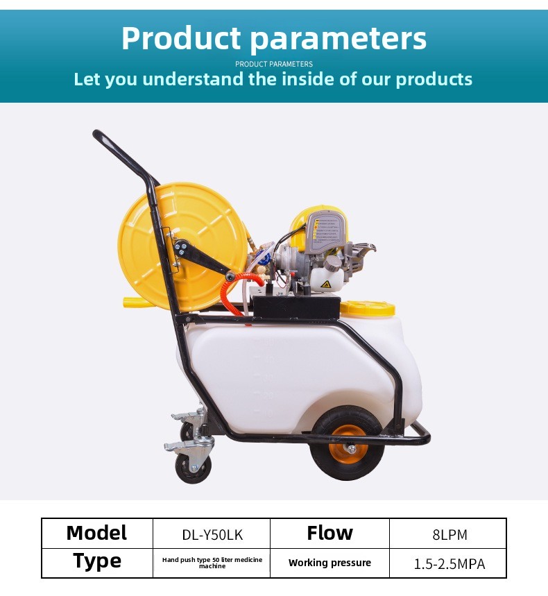 50L trolley gasoline engine sprayer, four-stroke high-pressure pesticide spraying and disinfection machine