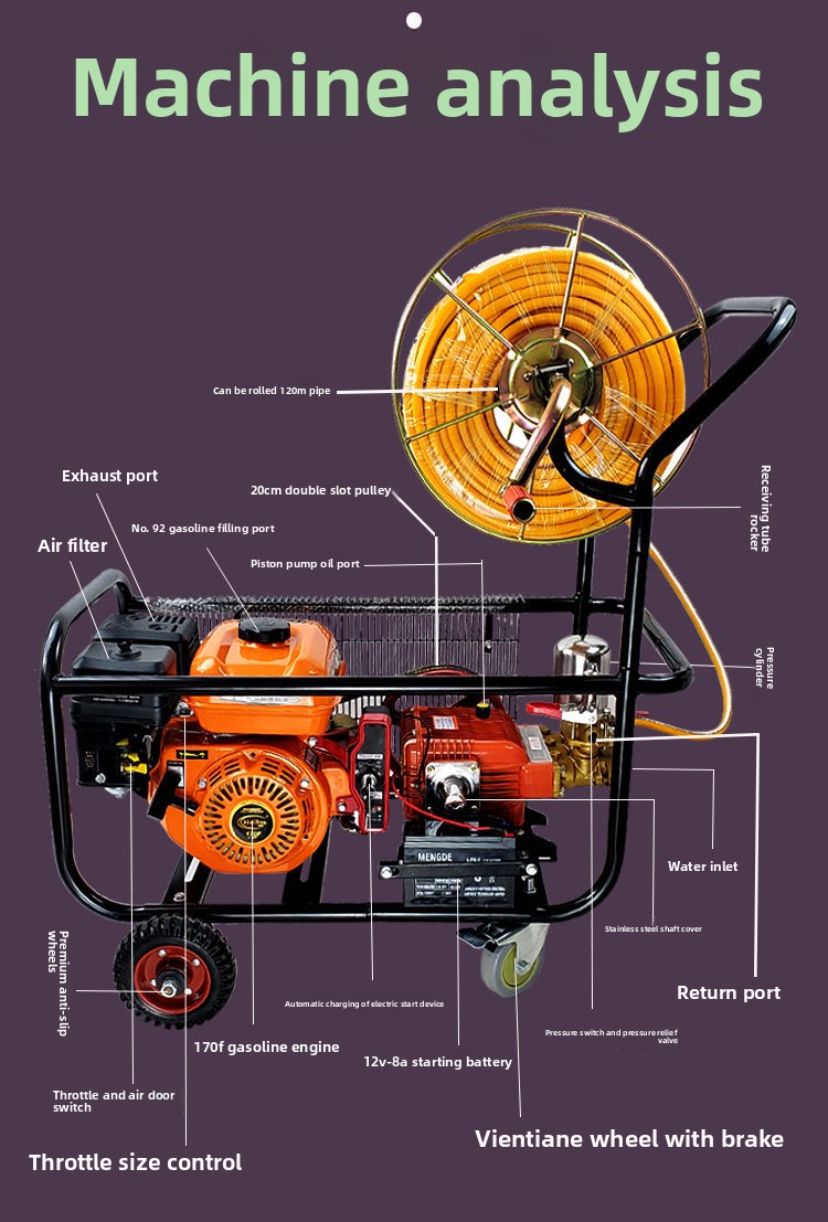 Agricultural high pressure sprayer, gasoline engine direct-connected sprayer, 170 model four-stroke high pressure pump spray disinfection tool