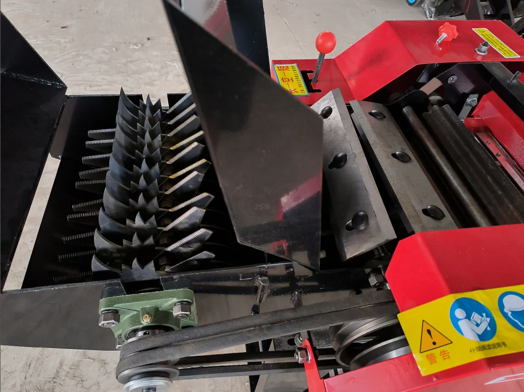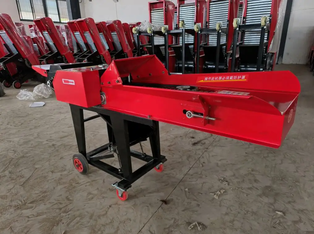 Product Description: This hay chopper and shredder combines chopping and shredding functions, processing crop straw such as corn stalks, wheat straw, and rice straw, as well as forage and silage. The finished product is used in animal husbandry for cattle, horses, pigs, and sheep. Product Advantages: 1. Thickened and hardened manganese steel blades resist wear. 2. Widened and thickened feed opening for automatic feeding. 3. Adjustable length with three settings to suit your breeding needs. 4. Equipped with removable universal wheels for quick and easy use.