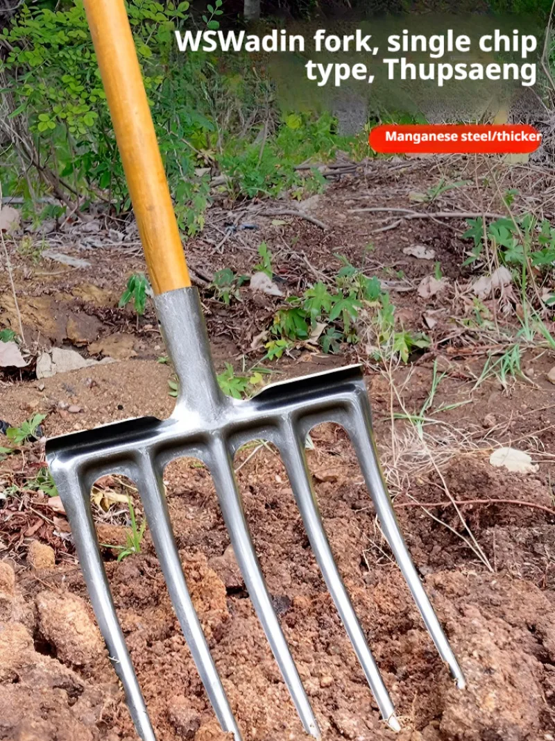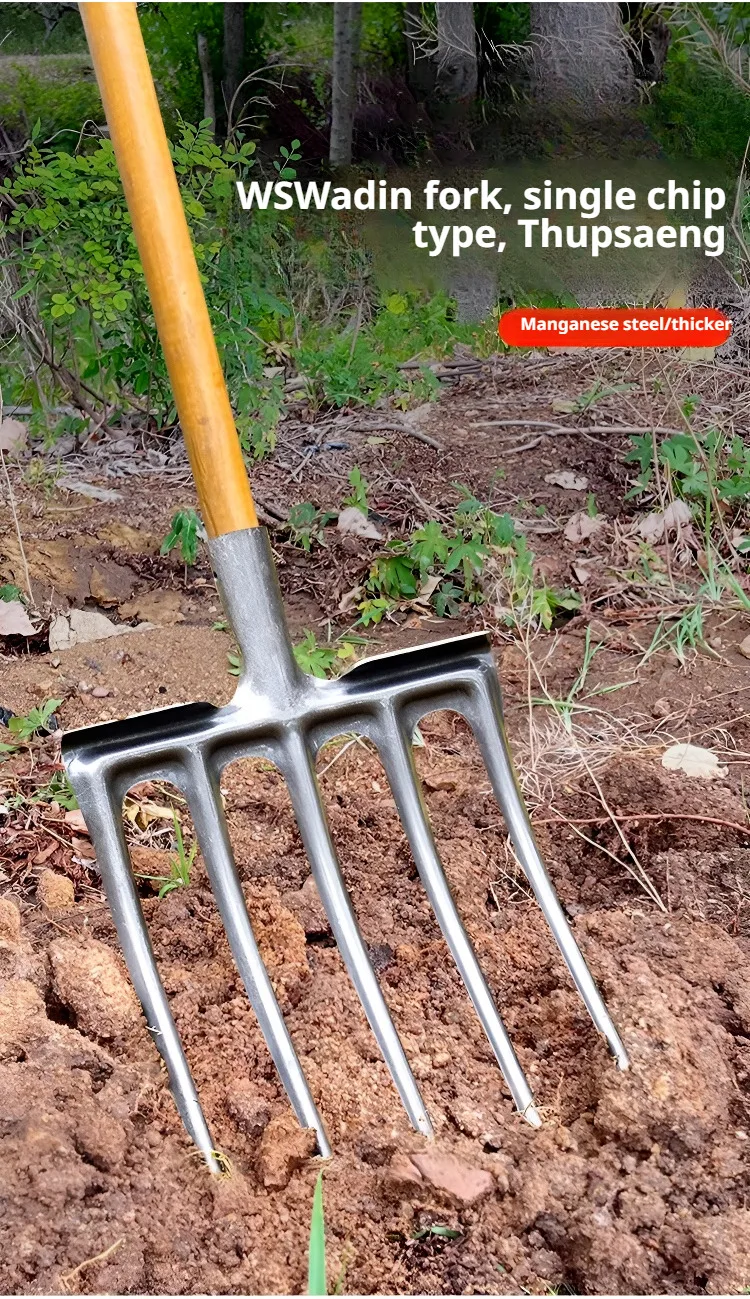 Agricultural Loose Soil Fork Fourtooth Manganese steel farming tools loosening and clearing Manual Garden Soil Turning Artifact