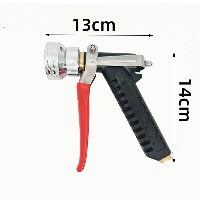 Adjustable short spray gun with atomizing spray, wide spray range, brass valve core, high-pressure and corrosion-resistant, and comfortable handle.