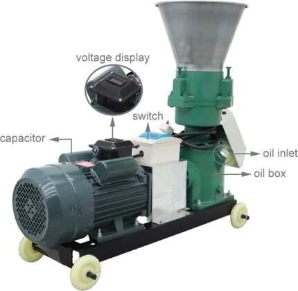 This is a pellet feed grinder equipped with an 8mm diameter grinding disc. The feed length is adjustable. It is suitable for producing pellet feed for livestock such as chickens, pigs, and cattle.