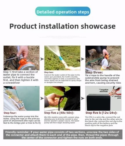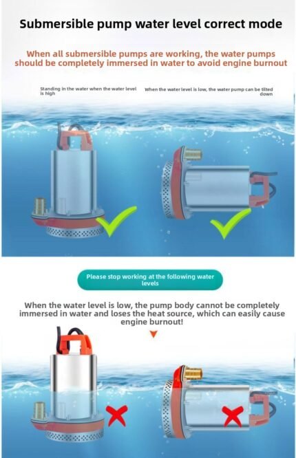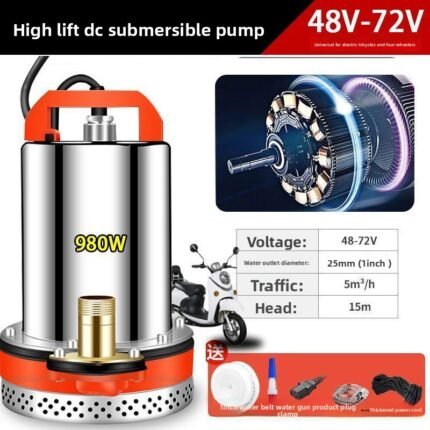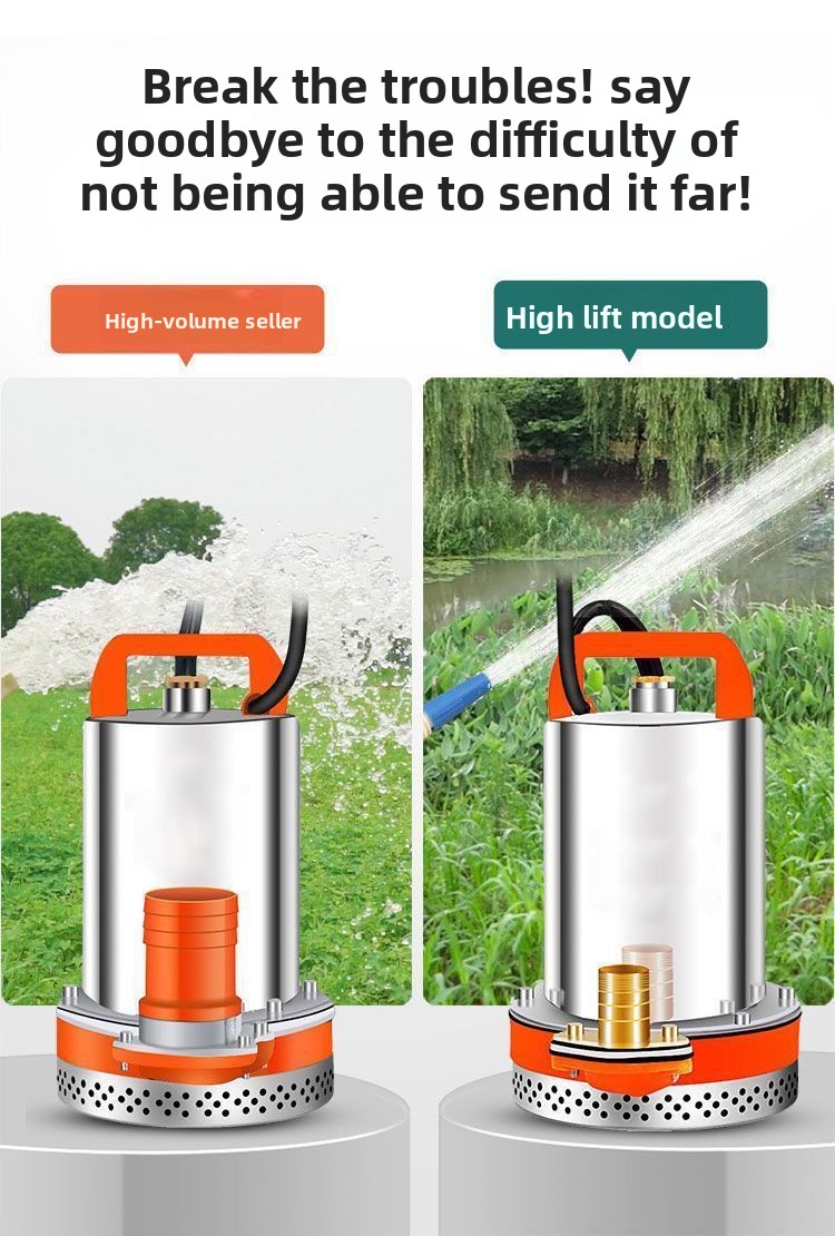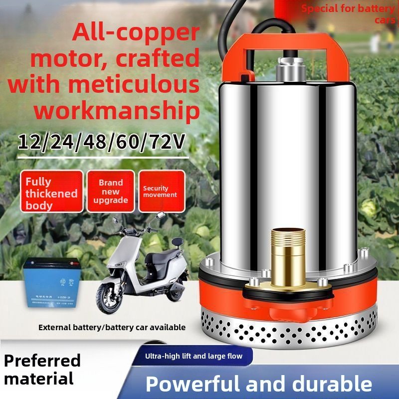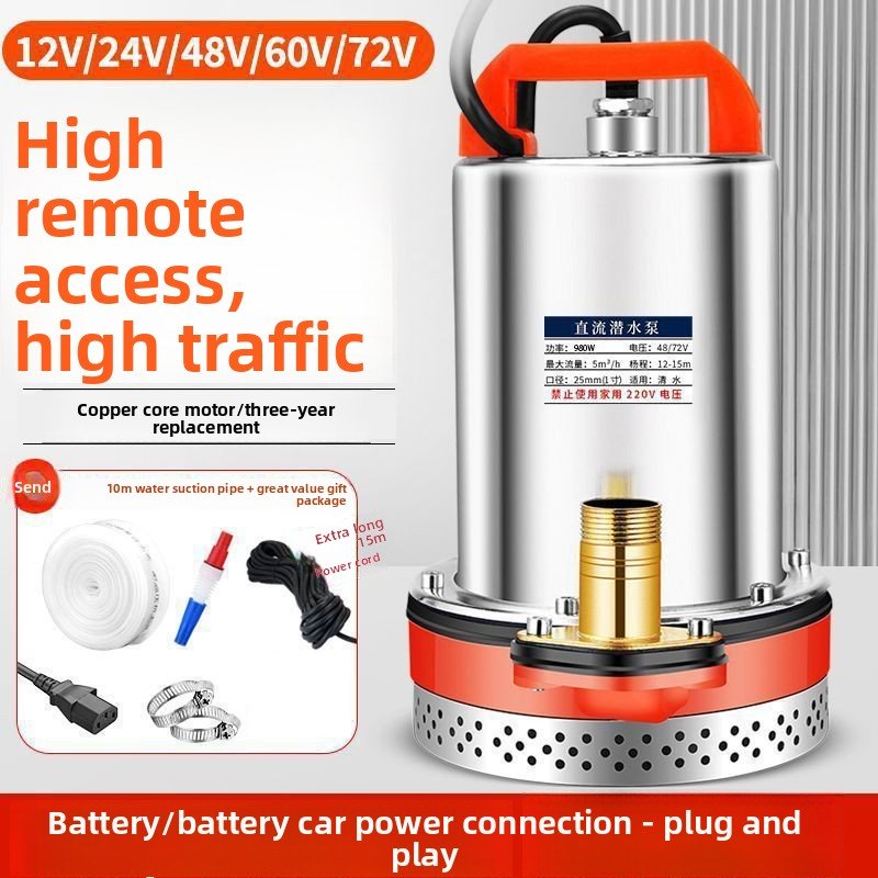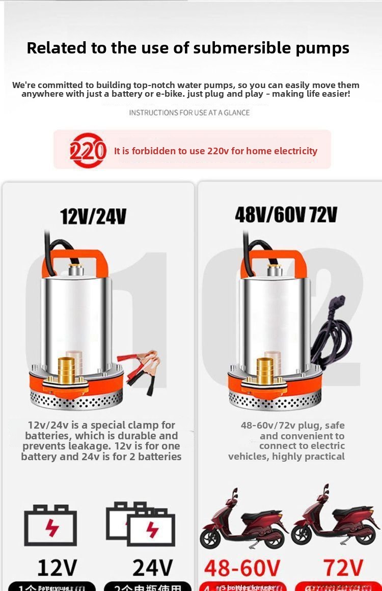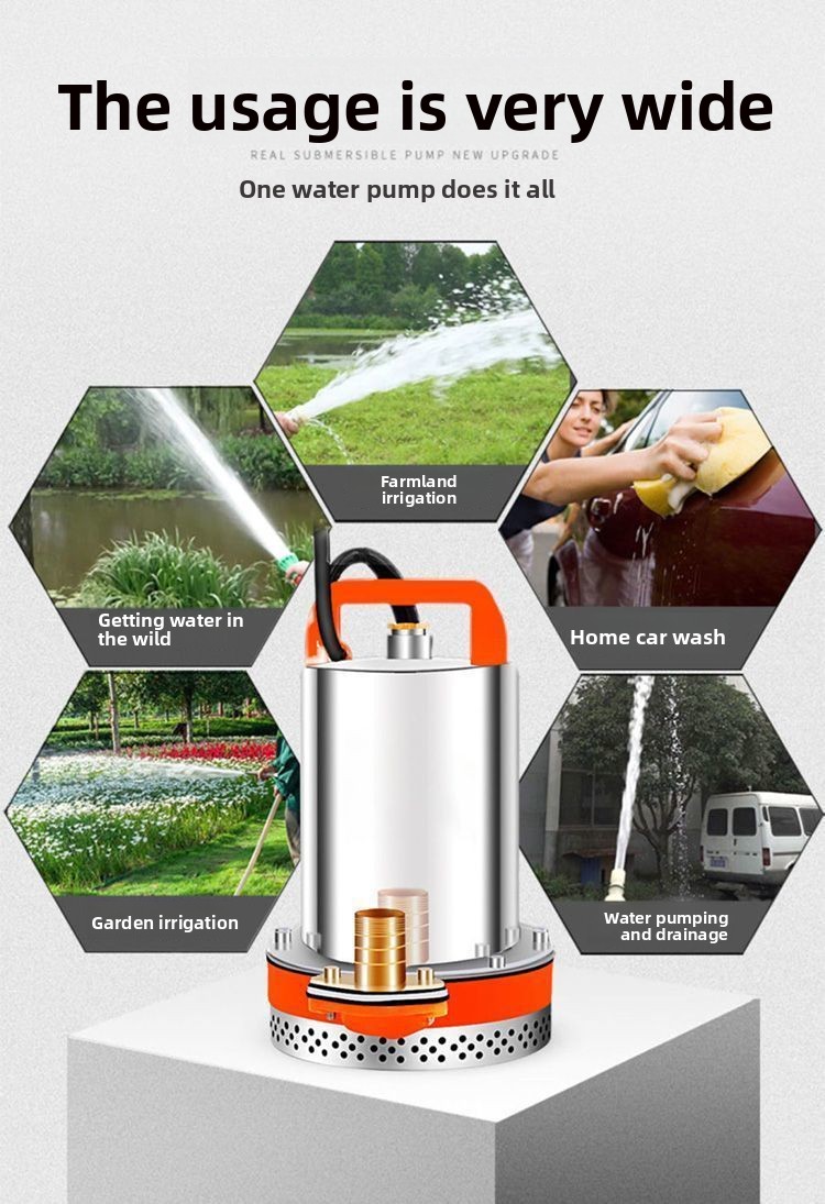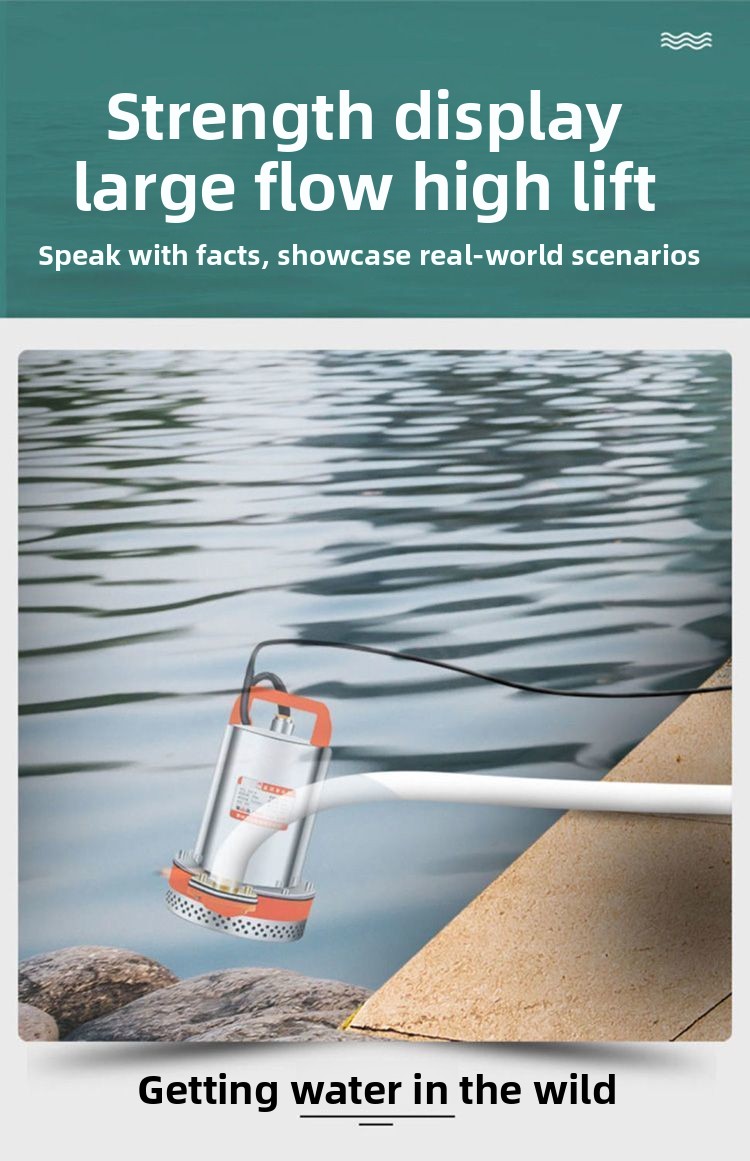 DC submersible pump: 12v-60v newly upgraded stainless steel large blades, larger flow and higher head, compact size and easy to carry, stainless steel tensile pump body, high-quality waterproof cable.