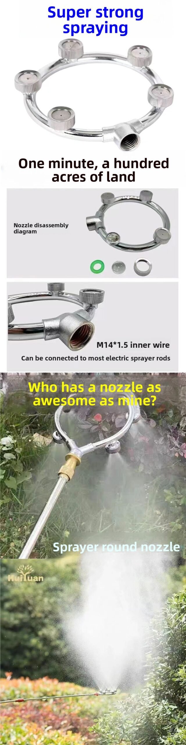 Fine mist spray nozzle for agricultural use The annular multi-nozzle nozzle has a wide atomization range, good atomization effect, and is made of stainless steel round nozzle.
