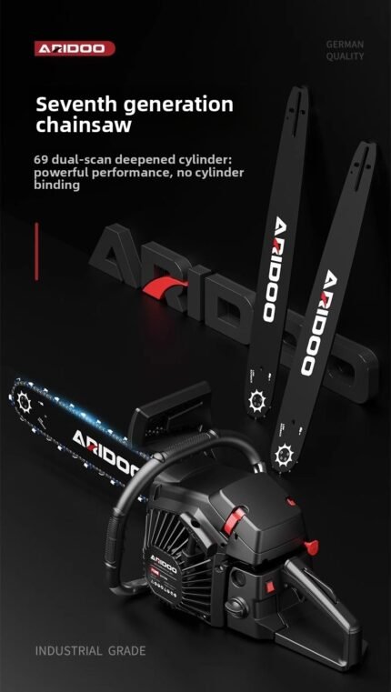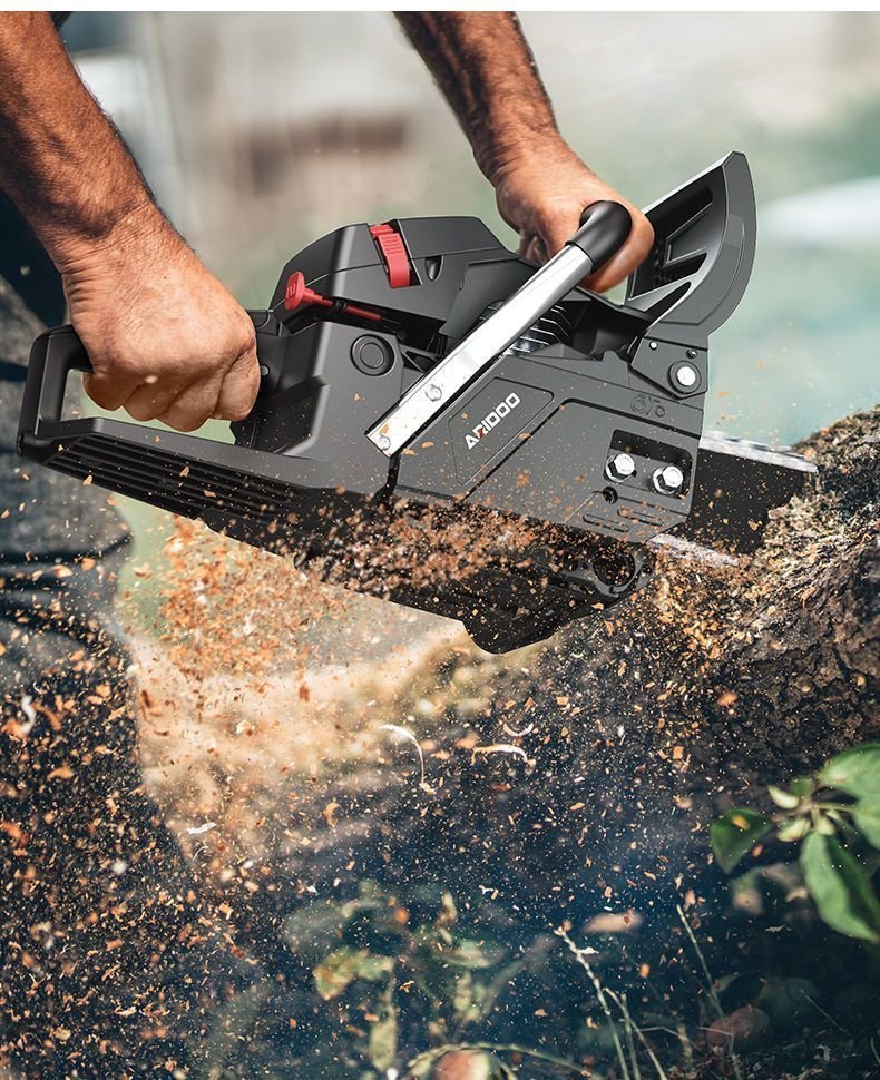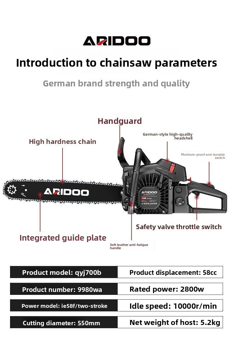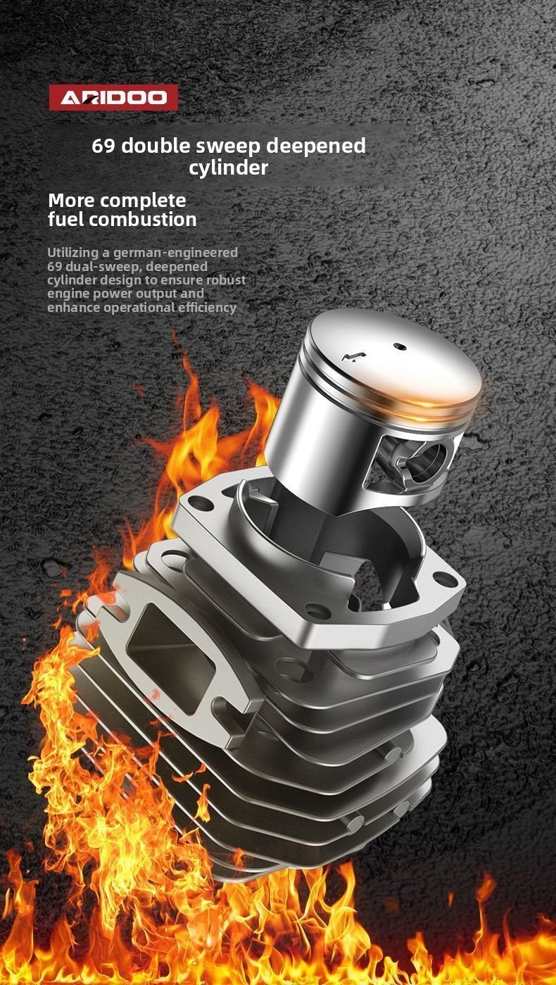 Four-stroke chainsaw: 69 double-sweep, deep cylinder for more fuel efficiency. Powerful power without stalling, high power and low fuel consumption, high-temperature flameout resistance, strong heat dissipation, and easy starting.