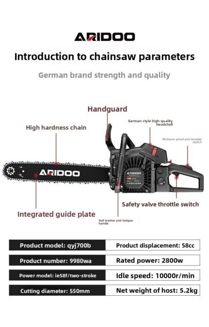 Displacement: 58cc, rated power: 2800w, main unit net weight: 5.2kg