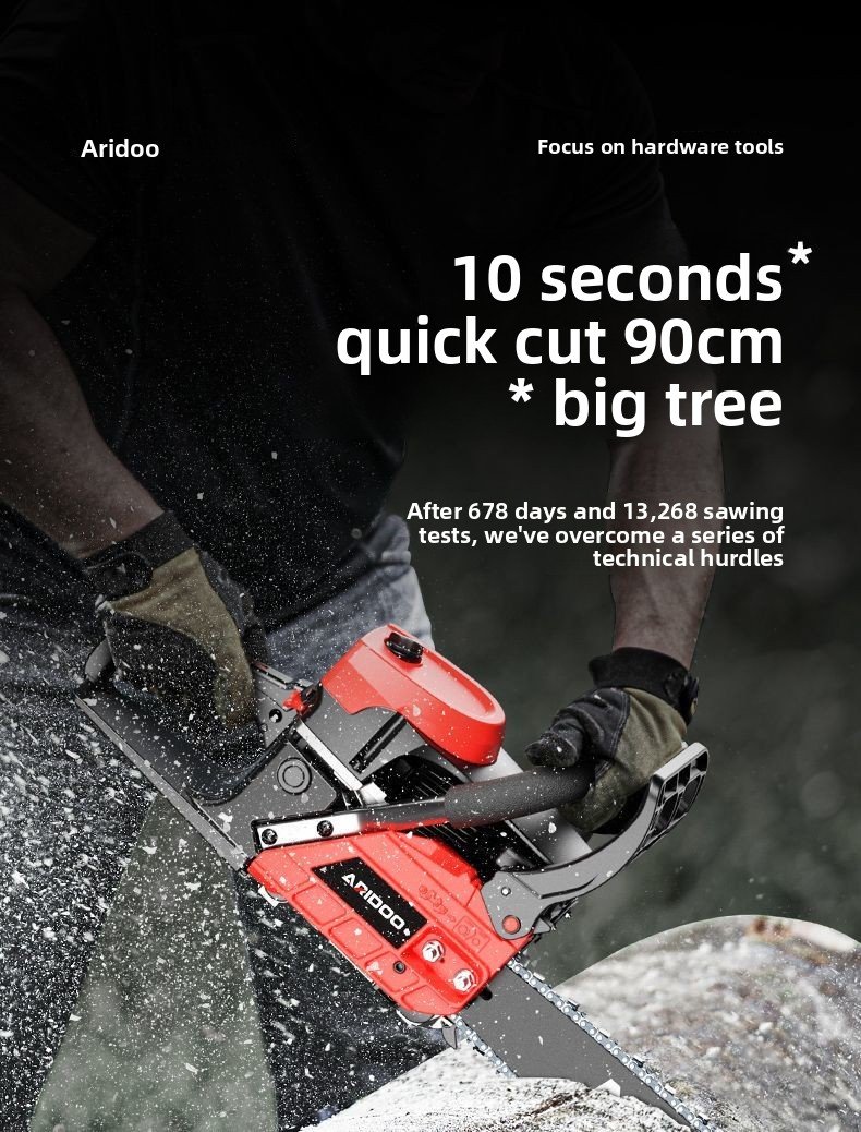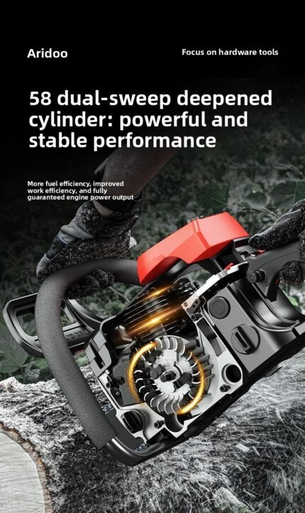Four-stroke chainsaw: 58 double-sweep, deep-cylinder design. Powerful and stable, high power, low fuel consumption, high-temperature flameout resistance, strong heat dissipation, and more fuel efficient operation.