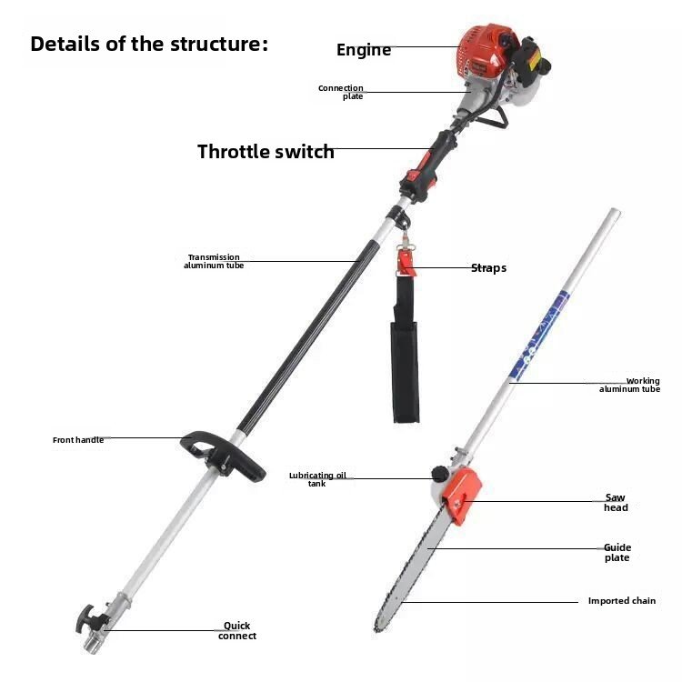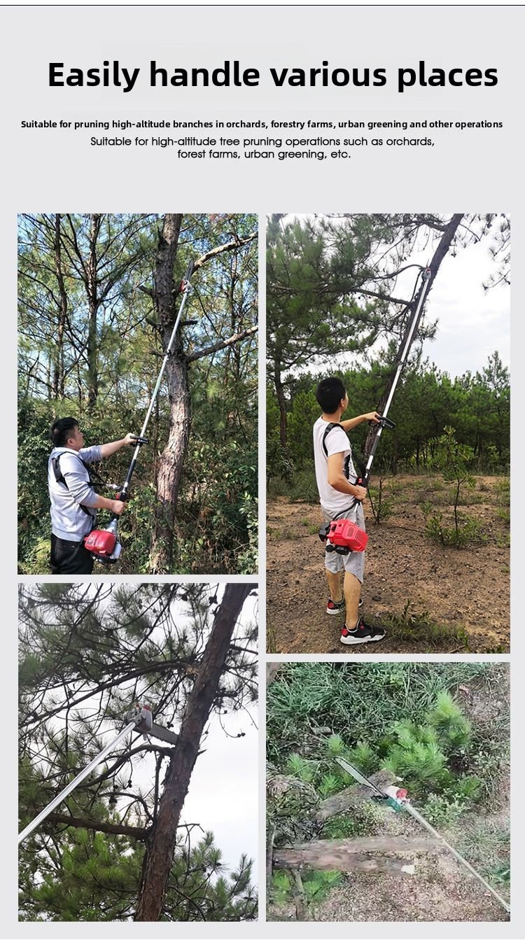 Gasoline-powered high-branch saw: Up to 5 meters high, suitable for orchards, forest farms, urban greening, and high-altitude tree pruning.