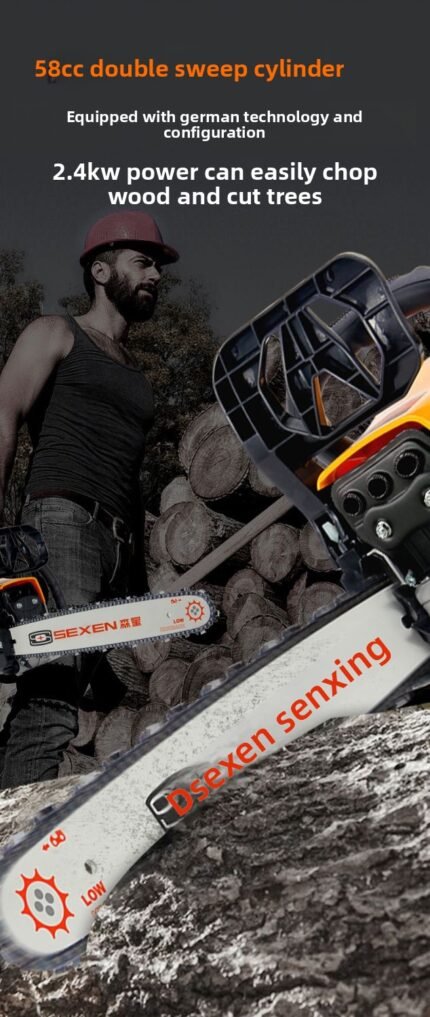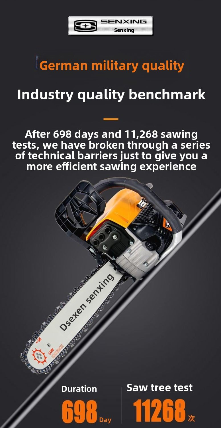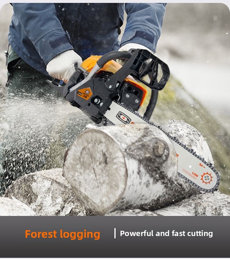 This upgraded high-power chainsaw features a thicker, high-strength alloy guide bar and hardened chain, delivering a powerful and efficient sawing experience and improved efficiency.