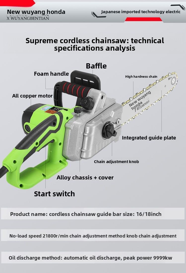 One-button chain tension adjustment and three-dimensional heat dissipation technology provide comprehensive protection. Thickened copper wire provides stronger power, allowing for continuous operation for 72 hours without burning out.