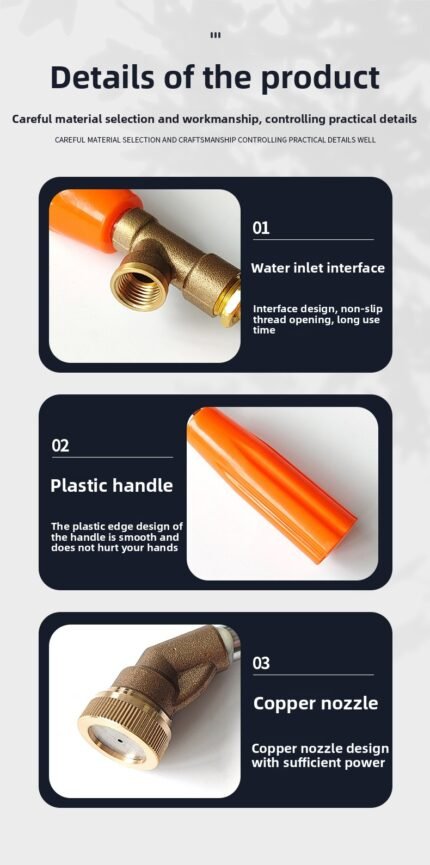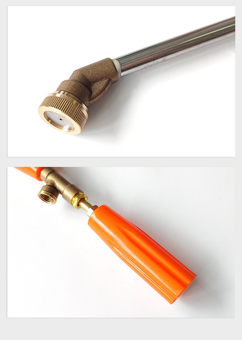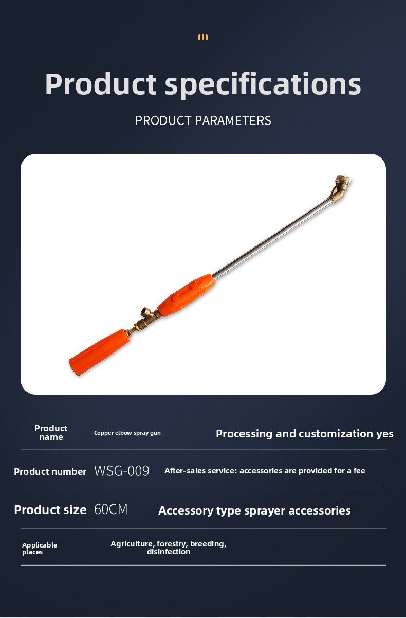 Adjustable atomizing spray gun copper nozzle, with wind shield, handle to adjust water inlet, all-copper joint, 45-degree nozzle, 60 cm copper elbow spray gun