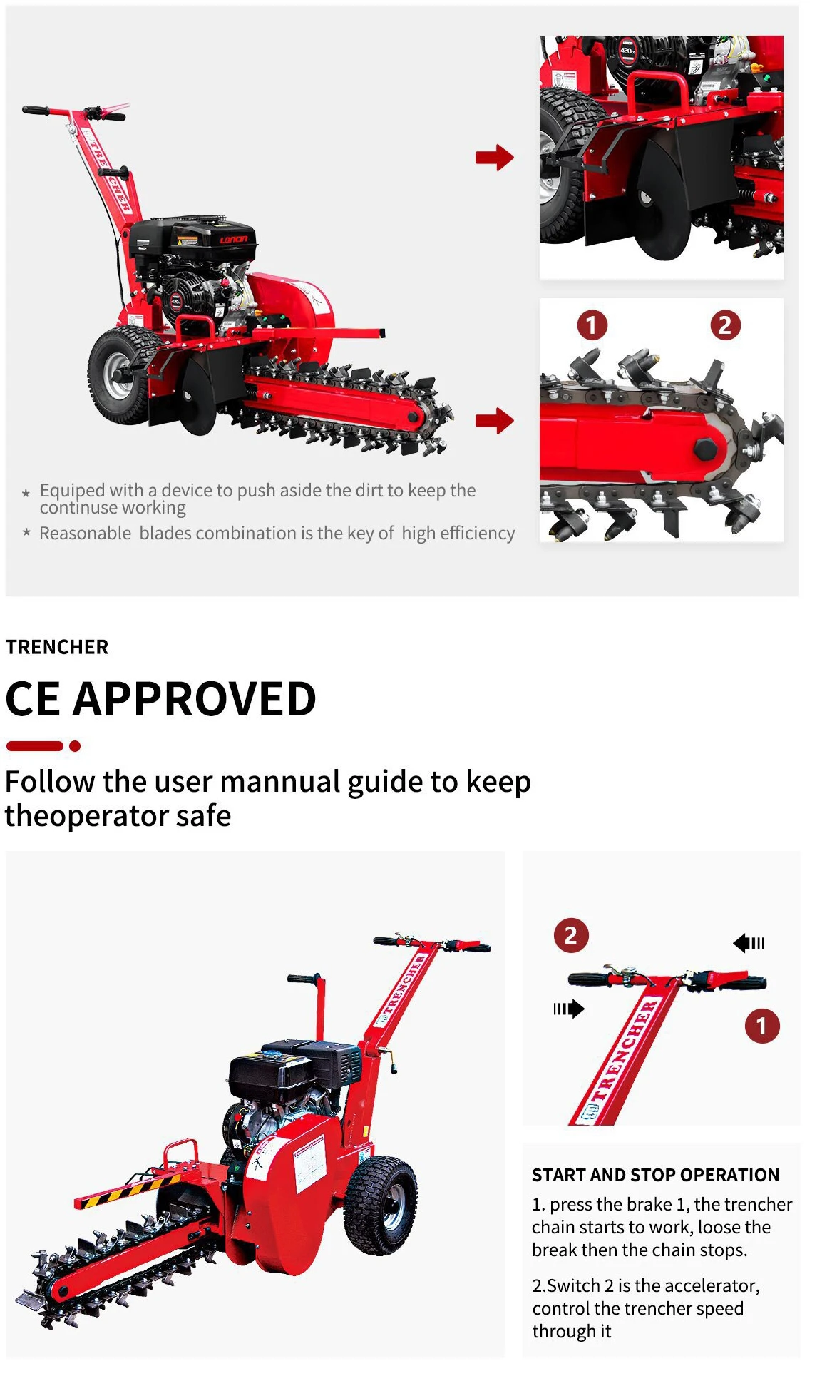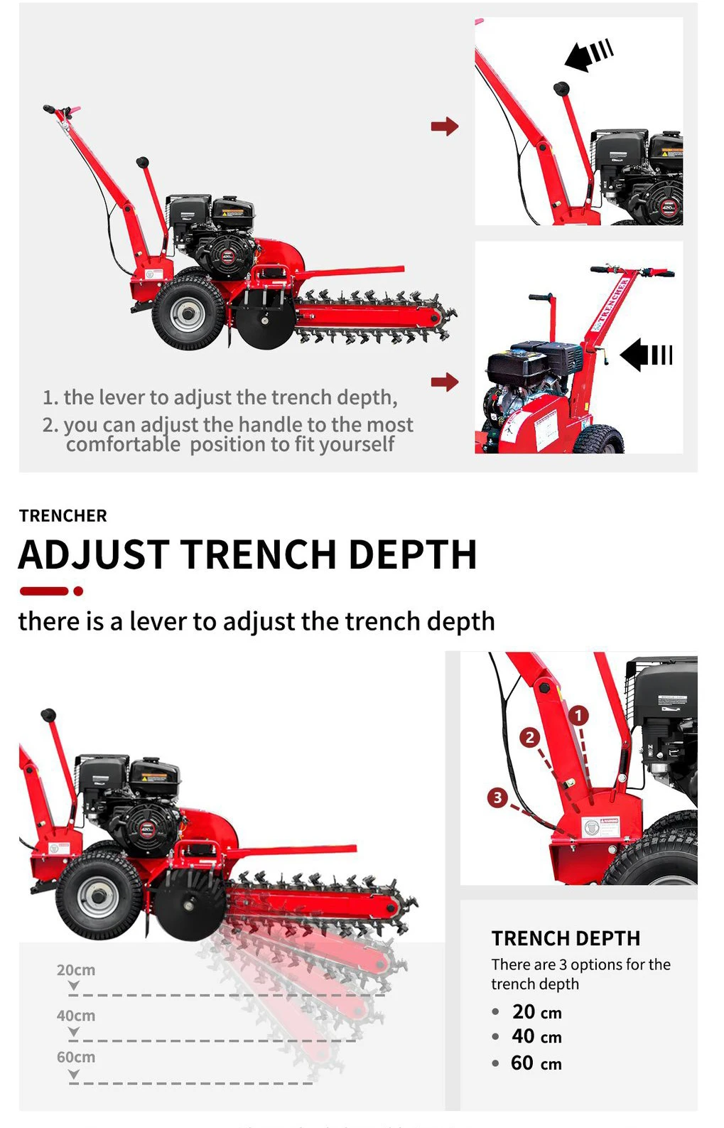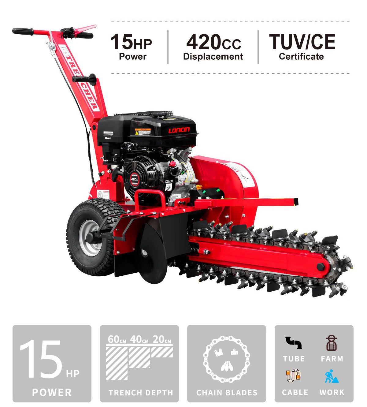 High-Quality Automatic Hydraulic Farm Tractor with 600mm Depth Handheld Chain Pump