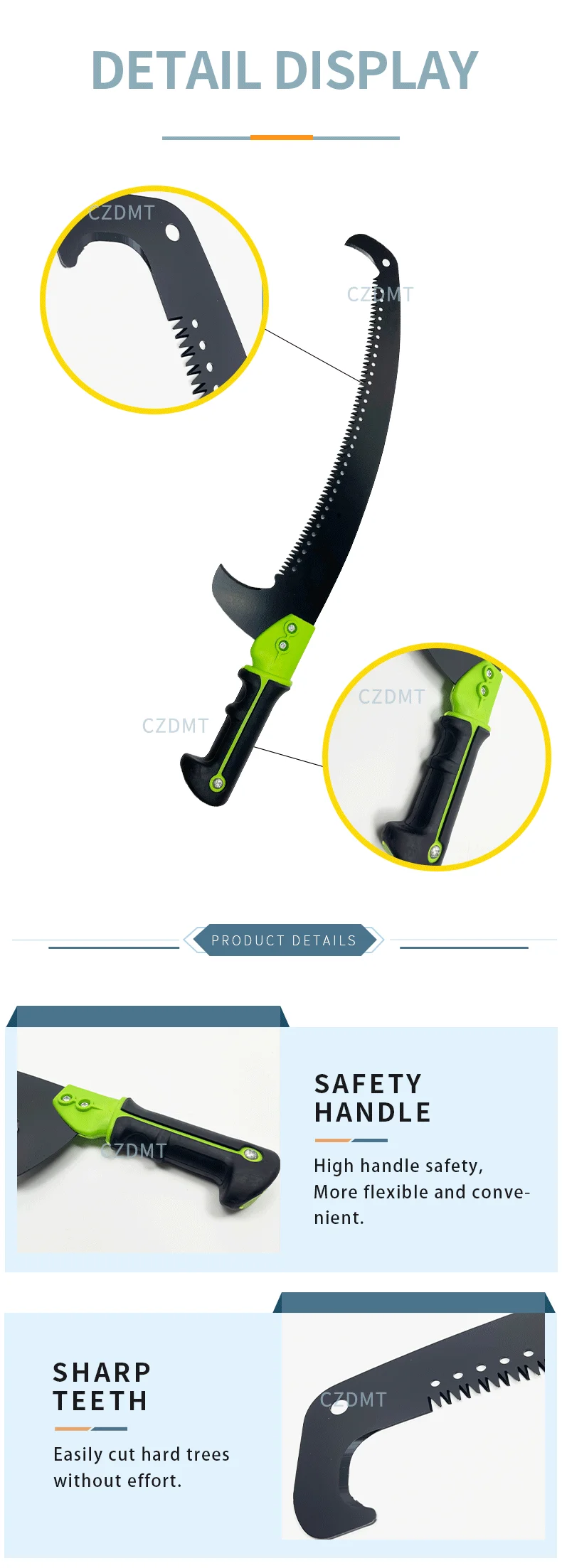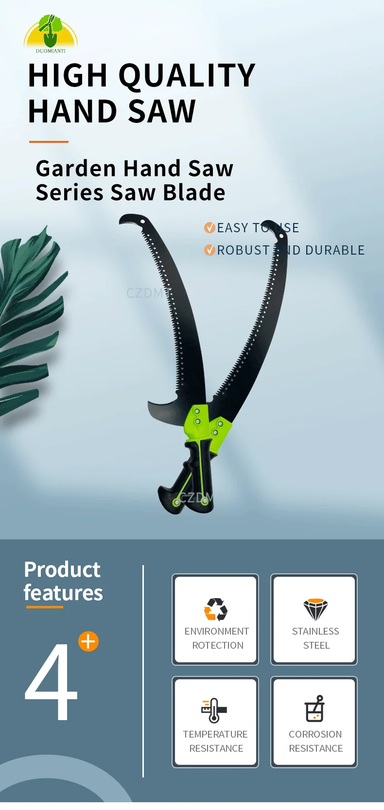 Three-sided grinding ensures durability; allows for fast and precise cutting in all directions; suitable for cutting fresh wood, dried wood, bamboo, and plastics.