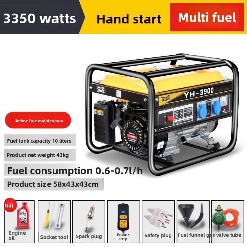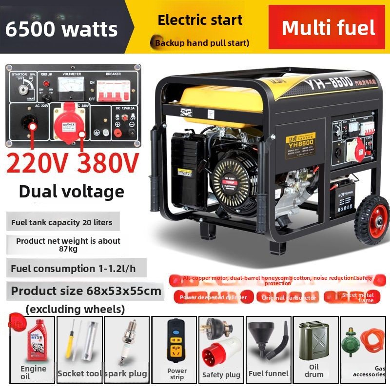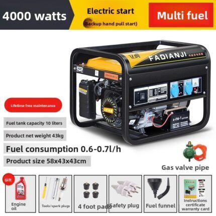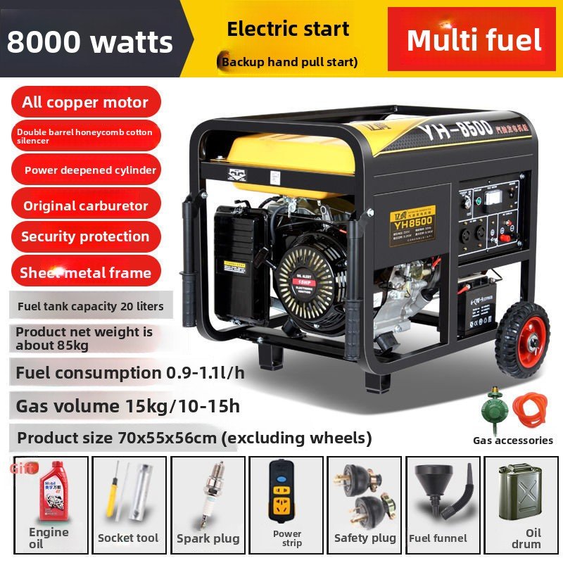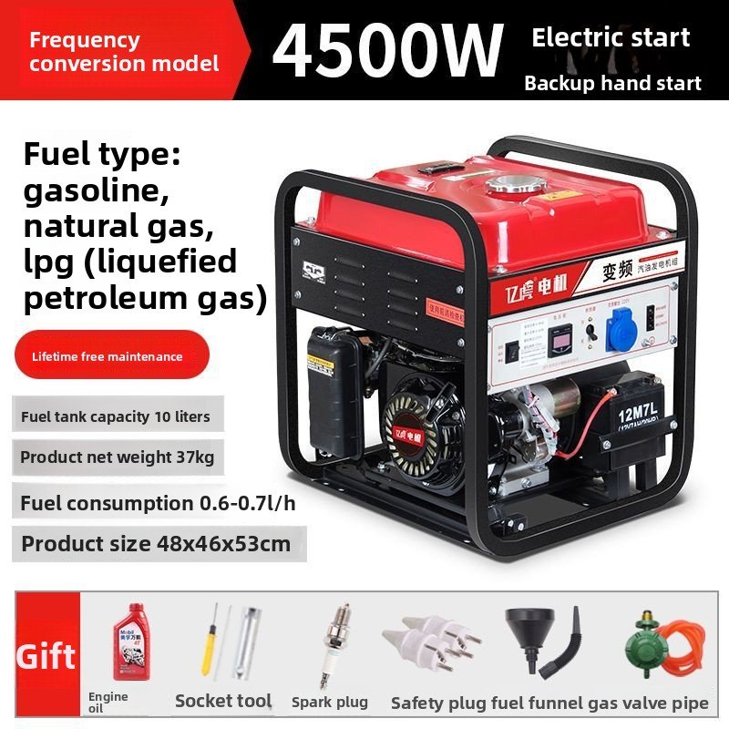 Dual-purpose generator: Low noise, low fuel consumption, compatible with gasoline, LPG, and natural gas. The frame uses upgraded sheet metal, offering high strength, impact resistance, crack resistance, and aging resistance. A larger, thicker fuel tank ensures long-term stable operation.