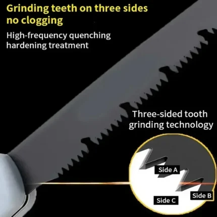 High-Speed Hand Saw: Features a wear-resistant and rust-proof Teflon coating for high abrasion and corrosion resistance. The extra-large folding saw uses SK5 high-speed steel with three-sided ground teeth that won’t rust, resulting in a smooth cut and saving time and effort.
