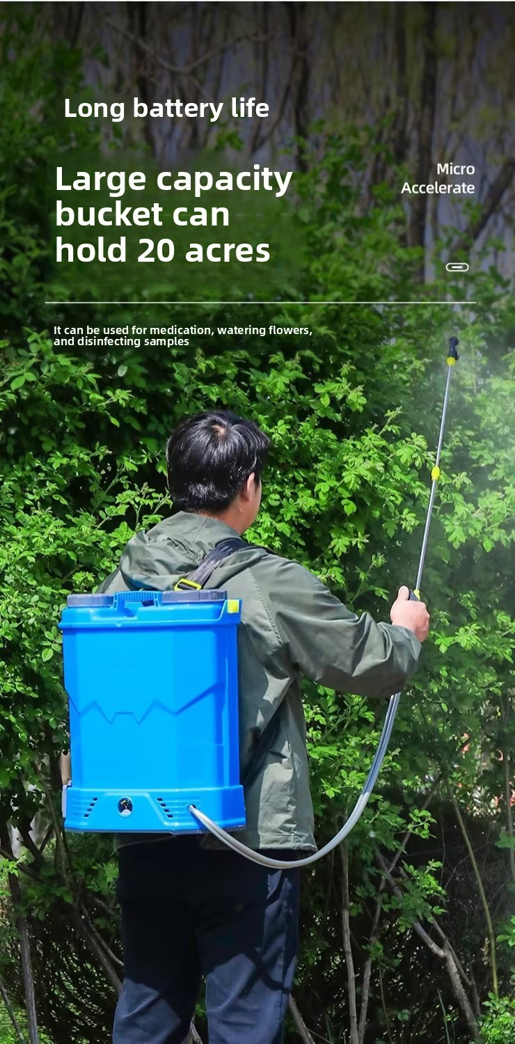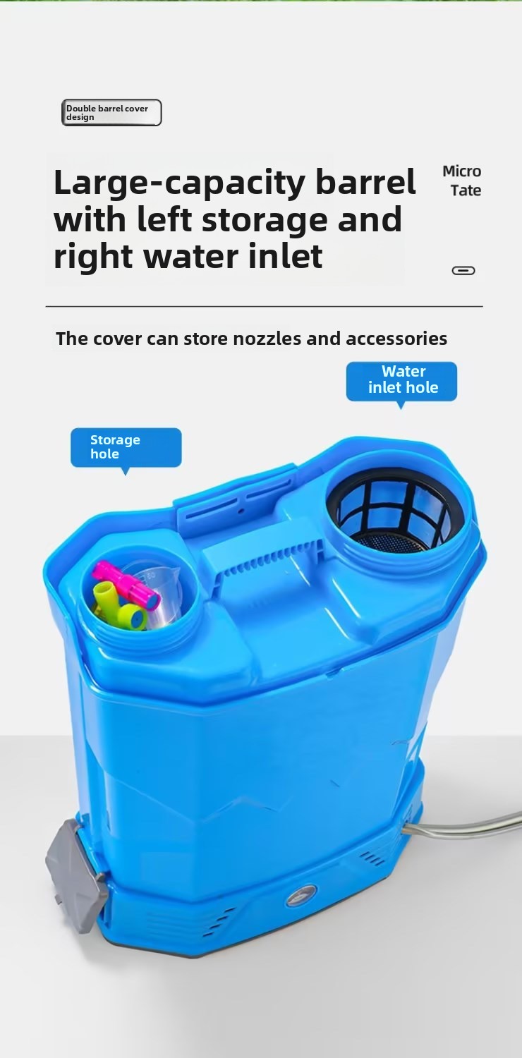 Backpack sprayer: built-in 10A lithium battery power supply, continuous spraying for 8 hours, widened shoulder straps, no fatigue after long-term carrying, breathable cushion, breathable and not stuffy, high-power pure copper motor, seamless PP plastic thickened water tank and wide-mouth cover, convenient for filling and cleaning. Easy to carry. Equipped with built-in filter and anti-clogging nozzle.