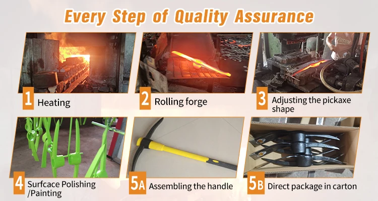 The pointed end is used for breaking gravel and hard, dry soil, as well as rocky surfaces, while the flat end is used for digging or loosening soft soil. It is an ideal tool for gardening work such as landscaping, planting, ditching, tilling, weeding, and felling.