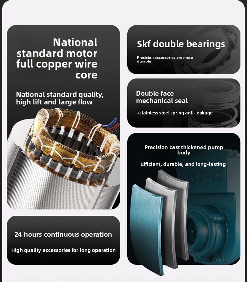 Upgraded all-copper motor, high-precision rotor, 304 stainless steel shaft