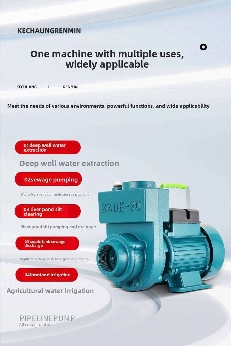 Self-priming pump household large flow agricultural sewage pump centrifugal pump booster pump clean water sewage dual use