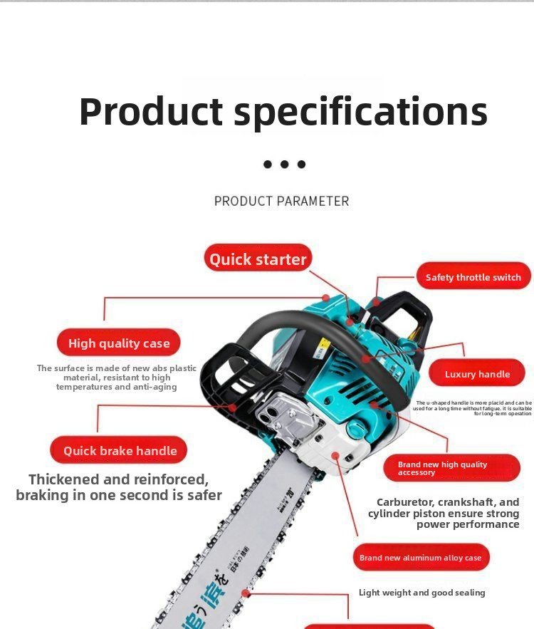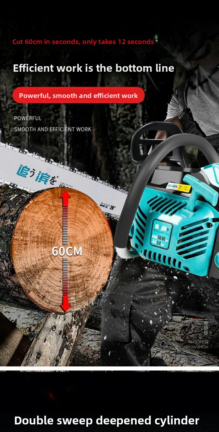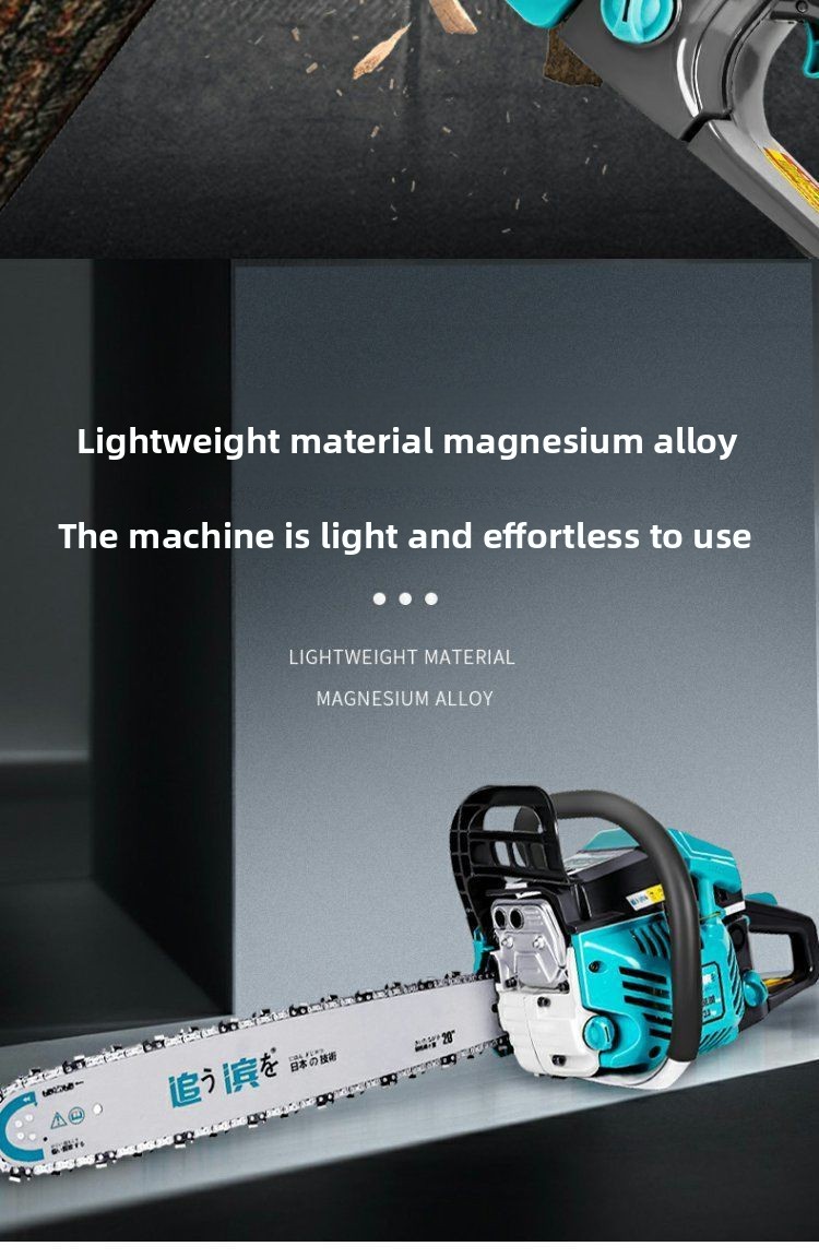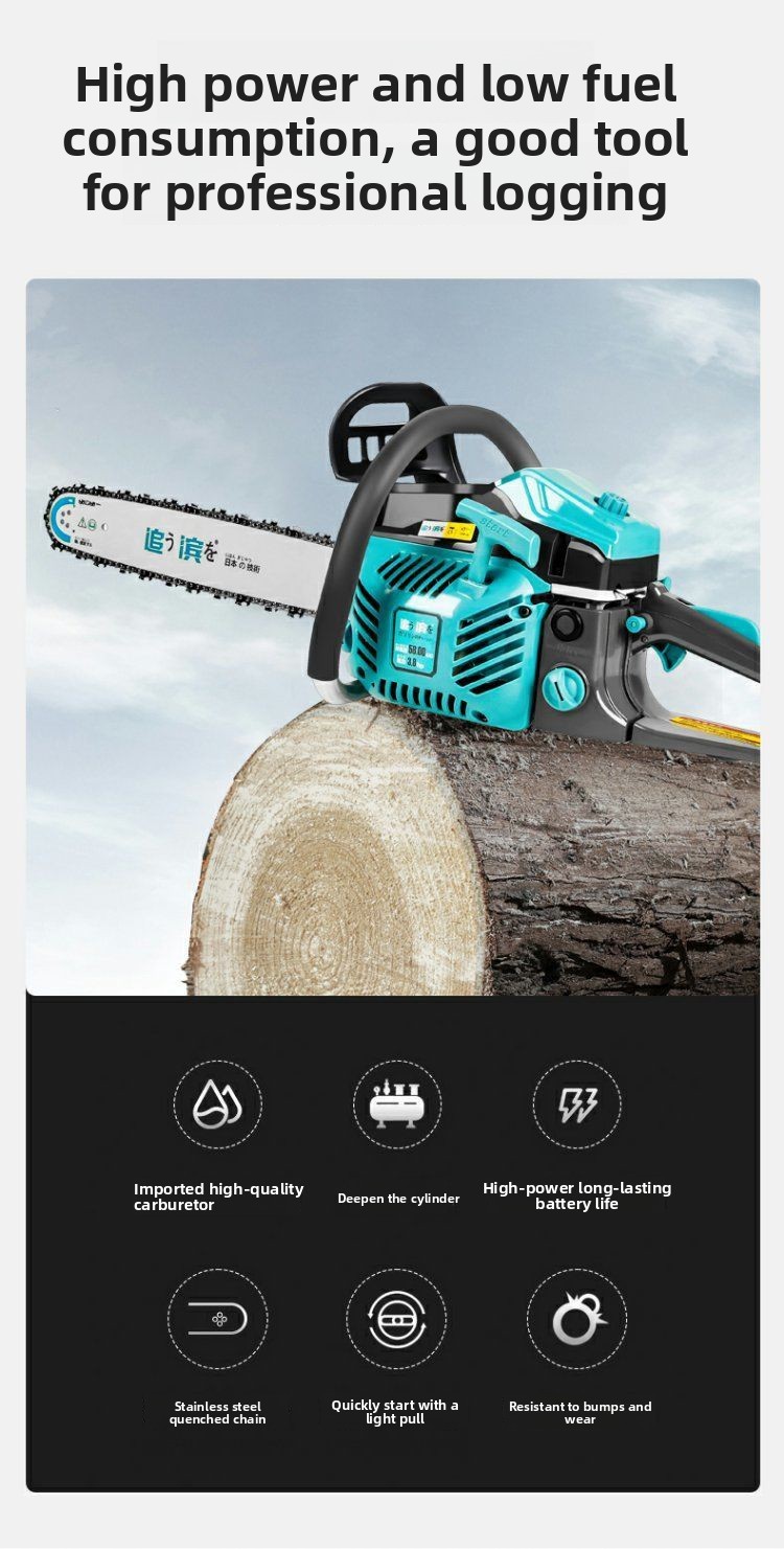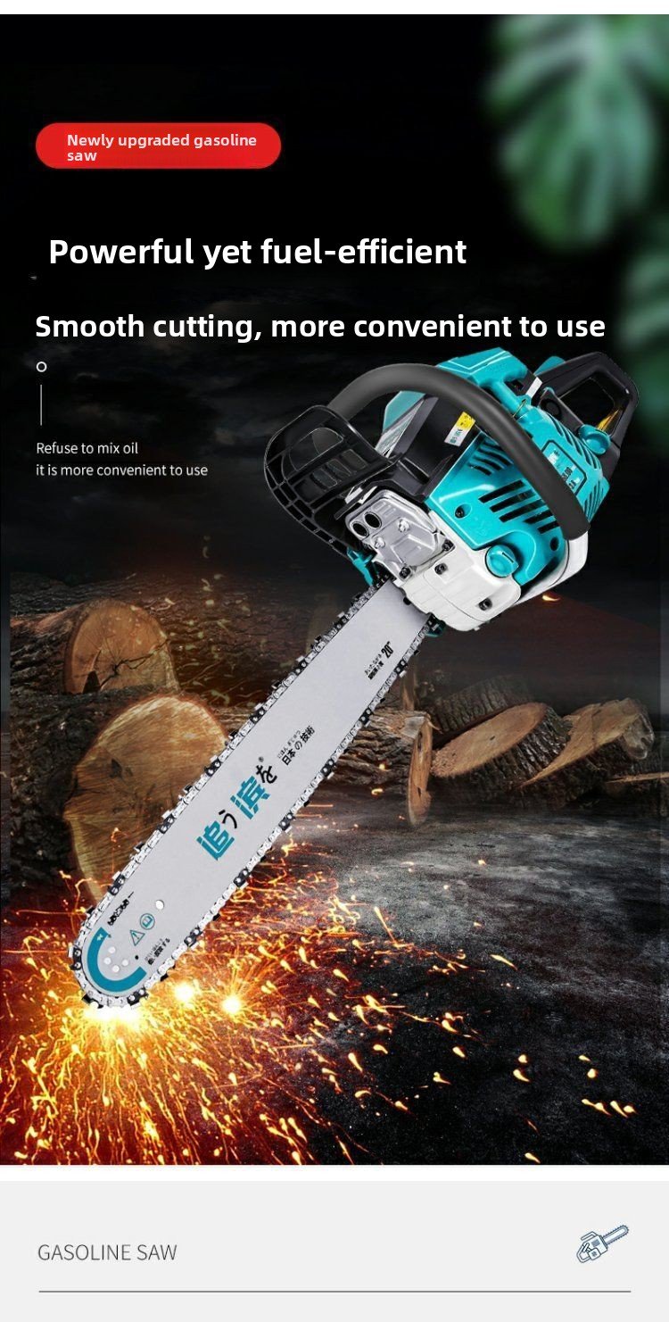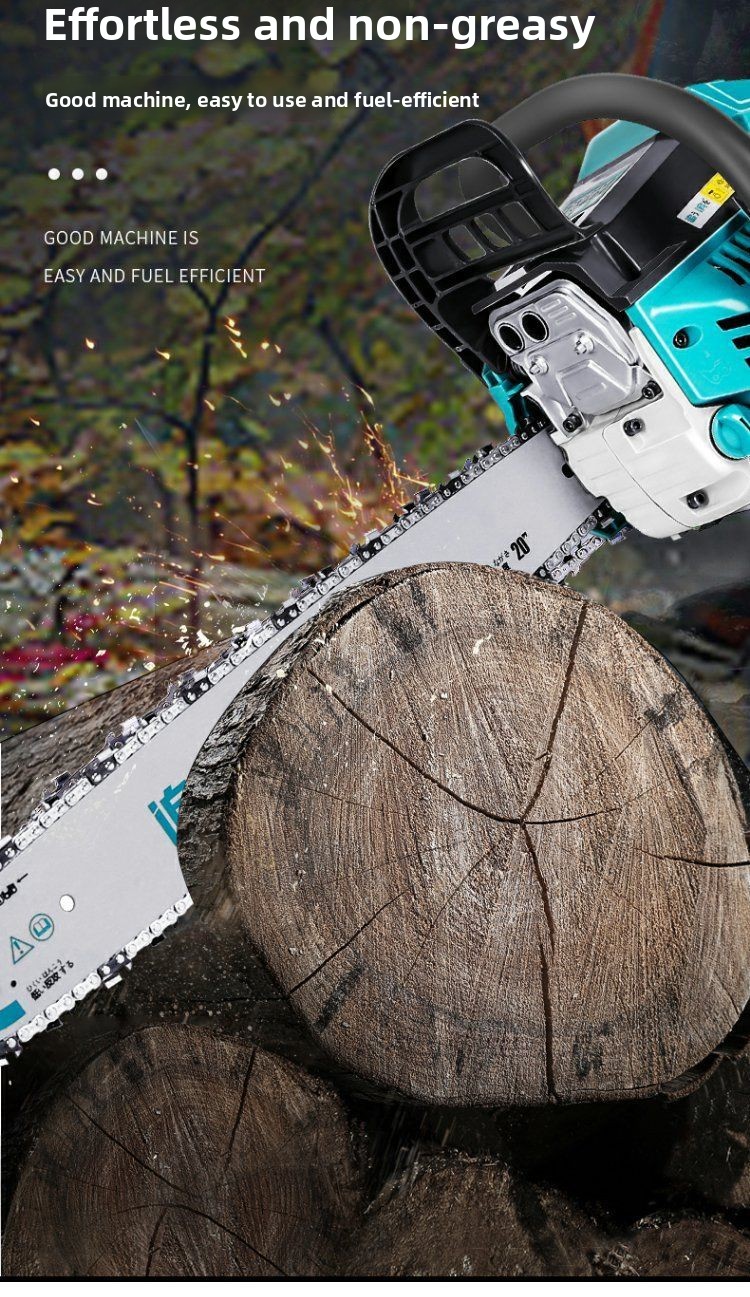 Two-stroke chain saw: High power, strong power, more complete combustion, strong cutting, easy to handle all-day work, and very fuel-efficient.